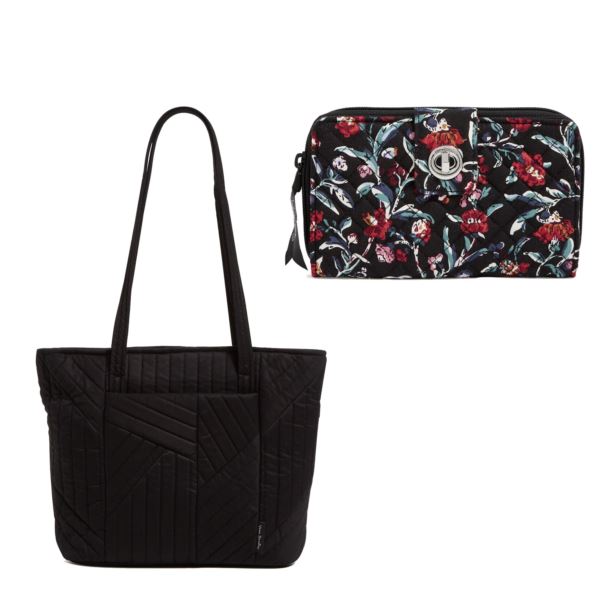 Small Vera Tote Black & RFID Turnlock Wallet Perennials Noir Package