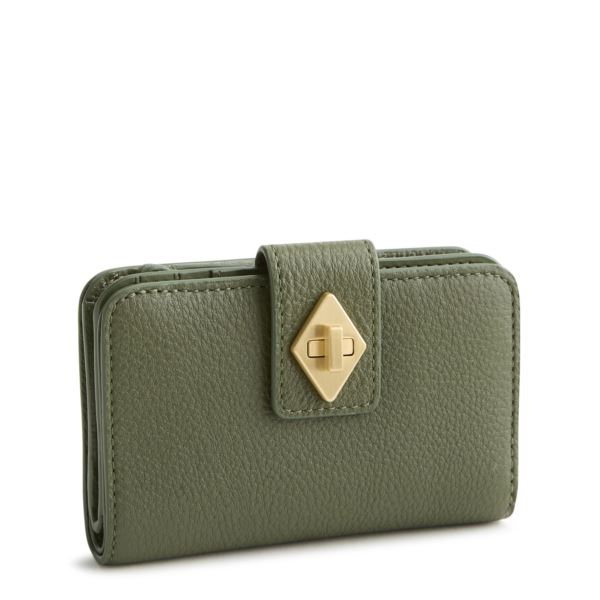 Made of leather sourced from premium American hides. Meticulously crafted, this lightweight, irresistibly soft leather provides a relaxed, modern silhouette and unquestionable level of sophistication. This wallet keeps everything beautifully in place. Exterior features a slip pocket. Interior features 8 card slip pockets, an ID window and 3 slip pockets. Main compartment has a divider and 2 slip pockets. Turnlock and zip closures. 5.25"w x 3.5"h.