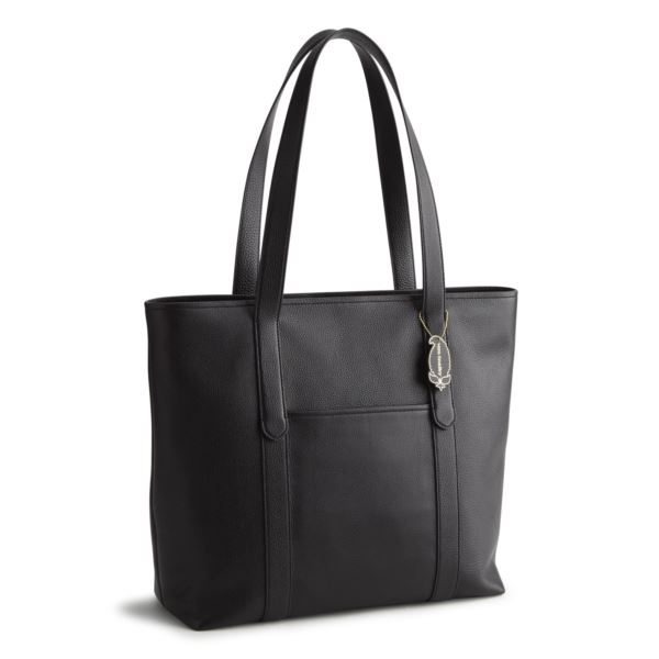 This classic large tote pairs effortless style with everyday practicality. Our full-grain leather collection is exclusively sourced from premium American hides. Meticulously crafted to achieve a naturally pebbled texture and lustrous sheen, this lightweight, irresistibly soft leather provides a relaxed, modern silhouette and unquestionable level of sophistication. Exterior features a slip pocket. Interior features 6 slip pockets. Zip closure. Handle drop 12". Top width is 19.25". 15"w x 14.5"h x 6"d.