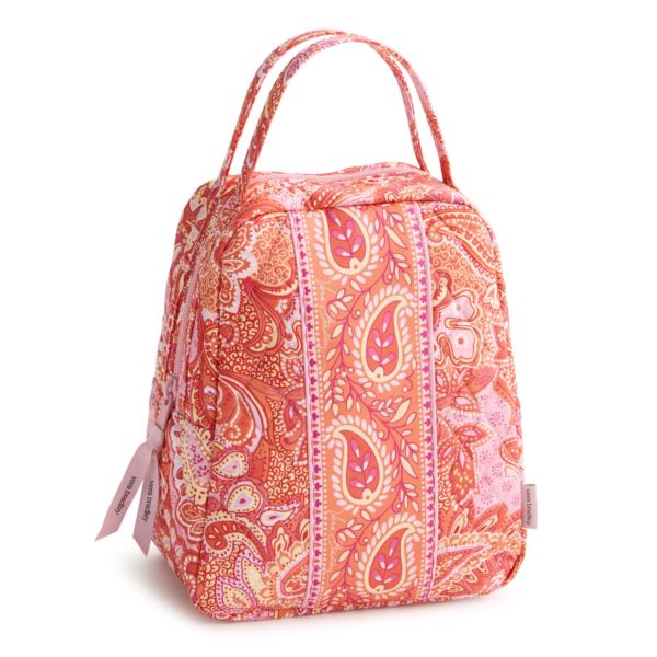 The perfect companion for keeping your meals fresh and stylish on the go. Whether you're heading to work, school or a picnic in the park, our lunch bag offers the ideal solution for carrying your favorite snacks and meals with ease. PEVA food-safe lining. Zip closure. Handle drop 3.0". Capacity 4 L. 7.25" w x 9.00" h x 4.25" d