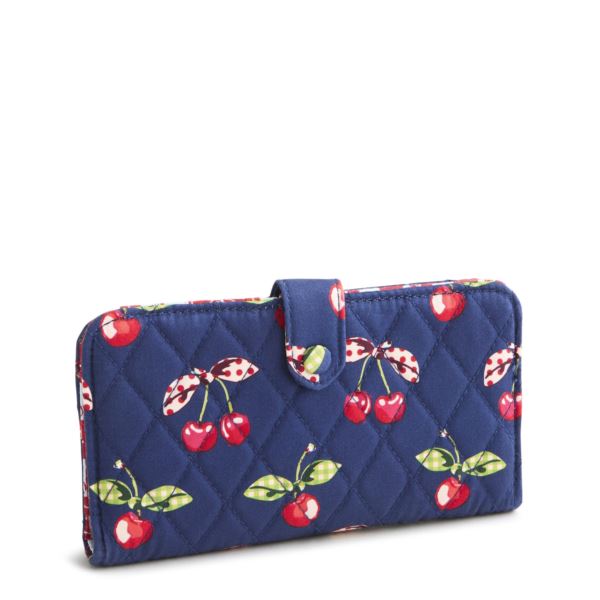Crafted from high-quality materials, this spacious wallet offers ample room for your cards, cash, coins and more, keeping everything neatly organized and easily accessible. Whether you're running errands, heading to work or traveling, our wallet offers the perfect combination of functionality, durability and style to meet your everyday carry needs. Exterior features a back zip pocket. Interior features 13 card slip pockets, and ID window and 4 bill slip pockets. Snap closure. 7"w x 3.75"h.