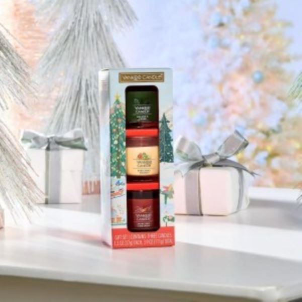 With this Christmas Classics Minis Gift Set, gifting classic holiday fragrances for everyone on your list is easy. This set includes three Yankee Candle® Minis (1.3 oz), one each in Balsam & Cedar, Christmas Cookie™, and Sparkling Cinnamon for the cozy feeling of winter. Balsam & Cedar: notes of crisp pine, fresh cedar & a walk through the forest. Christmas Cookie™: notes of warm sugar, smooth butter & fresh-baked holiday cookies. Sparkling Cinnamon: notes of cinnamon sticks, freshly ground clove & a glittering holiday party.