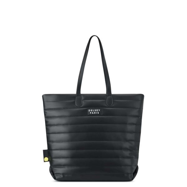 With its compact design, this tote bag is perfect for everyday wear or traveling and can be easily slid into an overhead bin or under your seat.. It is made of Vegan leather and the lining is made up of recycled polyester that is soft to the touch. It has a designated laptop sleeve and large zippered top opening. The smart band on the back slides easily over the handle of any suitcase. Exterior dimensions: 18.25" x 15.25" x 7"
