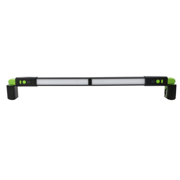 No matter where you are or what you're doing, this detachable worklight is the perfect light for your needs. It can be split into two work lights. It can be placed on the ground and rotated up, hooked on an eyelet, rope, nail, or shelf – and magnetically attached to any ferrous flat surface such as a car body panel or metal door frame. It features 3 brightness levels; rechargeable 2 pcs Li-ion battery; strong magnets on each end for mounting; two 360 degree fold-away swivel hooks and 84 Bright SMT LEDs (42 bright SMT LEDs/bar).
