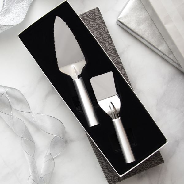 This two-piece gift set that includes our Mini Server and Serrated Pie Server is perfect for every baking fan. Packaged in an attractive gift box that makes wrapping unnecessary-simply add a bow. Made from quality stainless steel for great performance and superior durability. Limited Lifetime Guarantee. Made in the USA.