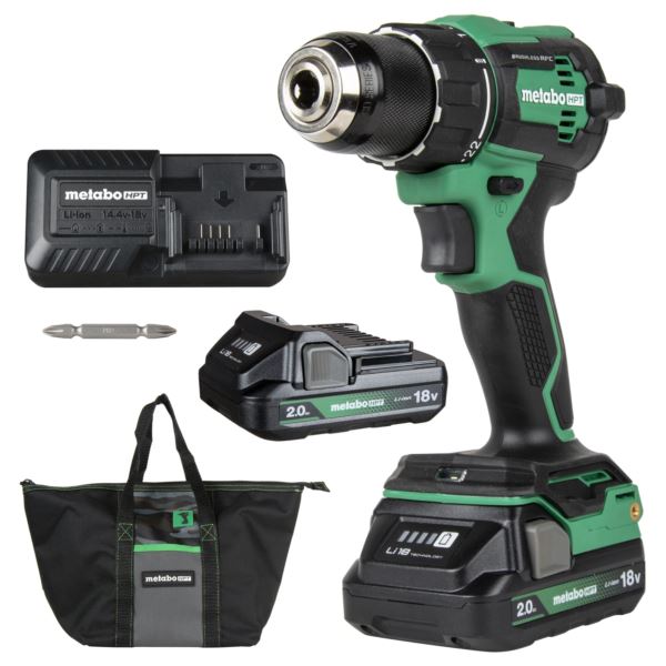 This kit is an innovative solution to make any job even more productive. It has 620 in-lbs of torque and 2,000 RPM. It is shortest in its class at 6.1" and includes 2-18V 2.0Ah batteries with fuel gauges, a charger and a carrying bag. It features a powerful brushless motor for more runtime, increased power and extended durability; anti-kickback for added safety; Reactive Force Control (RFC) that senses tool overload and stops rotation; keyless metal chuck; LED light; metal belt hook; and a lifetime tool body, 2-year battery and 1-year charger warranty.