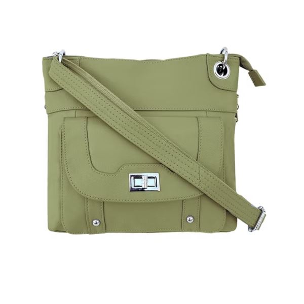 Crafted from genuine leather for durability and classic appeal. With its three spacious main compartments and multiple interior pockets, it is made with optimal storage capacity in mind. The pocket located on the front side of the bag comes with a leather over flap and a metal twist lock for closure. The backside has a pocket with zippers for dual entry on the right and left side, which also comes with a set of two keys for your wallet and passport when you travel. The wire reinforced shoulder strap is adjustable. 12" x 10"