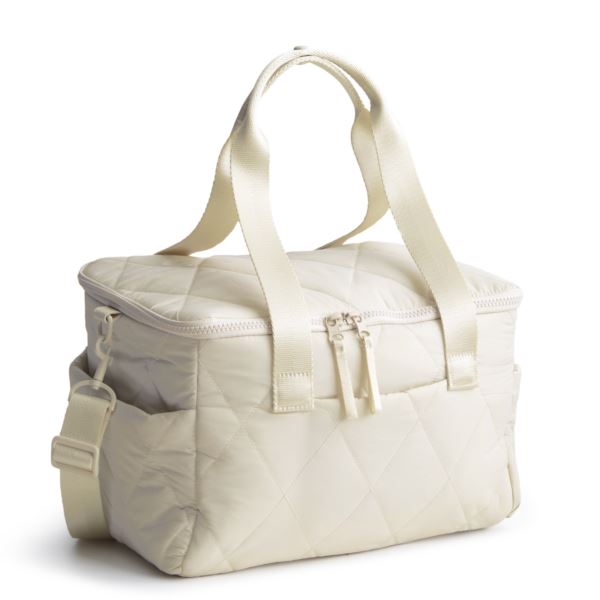 Designed for convenience and portability, this compact cooler offers the perfect solution for picnics, beach outings, tailgating, and everyday use, ensuring your beverages and snacks stay chilled and refreshing wherever you go. Exterior features two side slip pockets. It is insulated and has a food-safe PEVA lining and zip closure. The handle drop is 7.5" and the removable adjustable strap is 20" at longest drop. 11.75"w x 7.75"h x 7.75"d