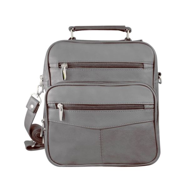 Compact, organized, and built for everyday mobility, this crossbody is a go-to solution for those who want function without sacrificing classic leather style. Crafted from genuine cowhide, this bag delivers durability with a soft, natural feel that only improves with use. It has 2 spacious main compartments and 1 top zipper pocket. The front organizer has 7 credit card slots and 1 ID window. The backside has 2 large pockets. The shoulder straps are adjustable and removable. 9" x 10".