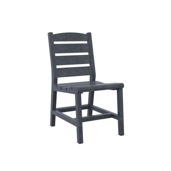 Chair contains up to 100% recycled materials with UV stabilized pigments. It is made with 7/8" thick lumber that is ground, melted and extruded in-house and marine grade hardware. Fits under any 31" table top. Worry free maintenance. Guaranteed to never rot, crack or splinter. Made for outdoor living, it is heavy, durable and weatherproof. 25 year limited lifetime warranty. 35"H x 18.5"W x 24"D. Seat height 18" (Color: Slate Grey;)