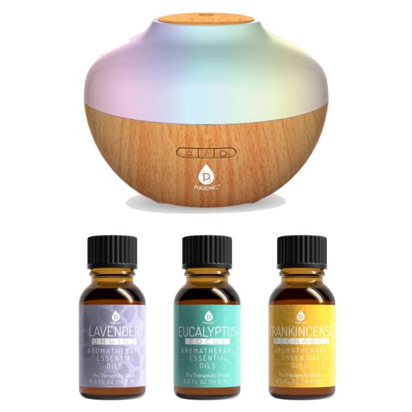 Package includes: 3 Pack Aromatherapy Essential oils (Lavender, Eucalyptus, Frankincense) & Essential Oil Aroma Diffuser. Featuring carefully formulated scents to fit whatever needs might arise throughout the day. Just rub on one of these oils or pour into a bath when you need to relax, de-stress or heighten your awareness. The diffuser is great for aromatherapy as well as enhancing your home décor.