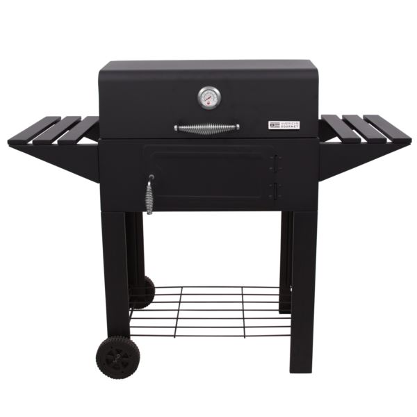 A mid-size box-style grill with 615-square-inches of grilling space. Enjoy uninterrupted grilling, conveniently tending the fire through the charcoal access door while multiple dampers and a height-adjustable charcoal pan allow for easy control of heat and smoke. Use the warming rack to keep food warm or cook at lower temperatures and the side shelves to prep your food and hold your tools. It features porcelain coated primary cooking grates; chrome plated secondary cooking grate; lid-mounted temperature gauge and a cool touch handle on the lid.